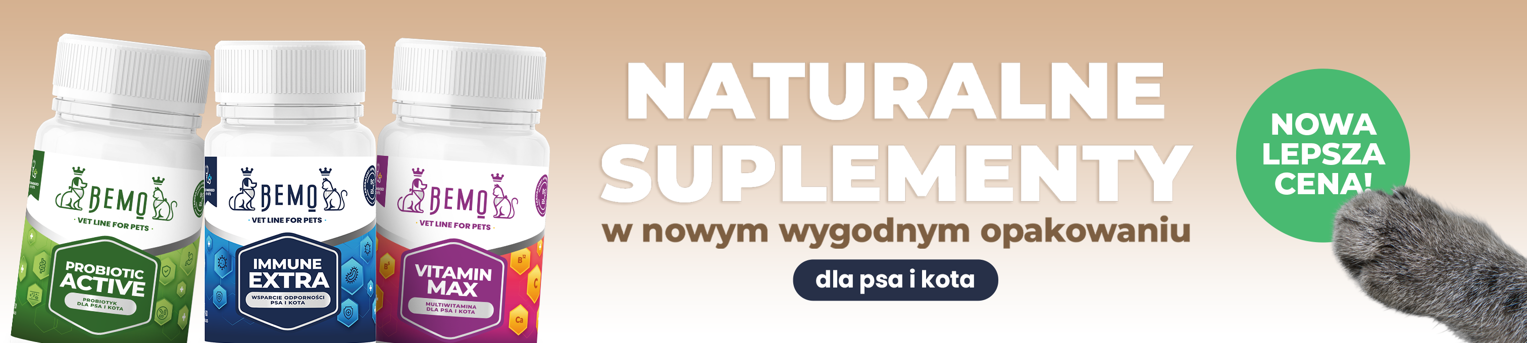 Naturalne suplementy dla psów i kotów to odpowiedź na dzisiejsze potrzeby Waszych pupili. Organiczne suplementy dla psów i kotów profesjonalnej marki żywieniowej Bemo to produkty oparte na homeostatycznym podejściu do żywienia zwierząt. Suplementy marki Bemo to doskonały sposób na uzupełnienie każdej diety psów i kotów oraz wspieranie ich zdrowia na co dzień w naturalny, bezpieczny sposób.